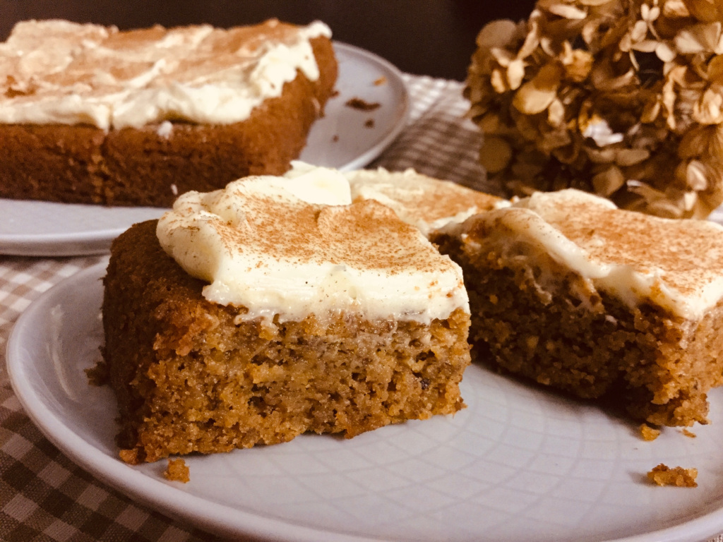 E poi è così versatile, tanto che risulta straordinaria anche quando impiegata in ricette dolci, proprio come in questa versione glutenfree di torta alla zucca, deliziosamente speziata e umida al punto giusto, glassata con un ottimo frosting alla crema di formaggio.