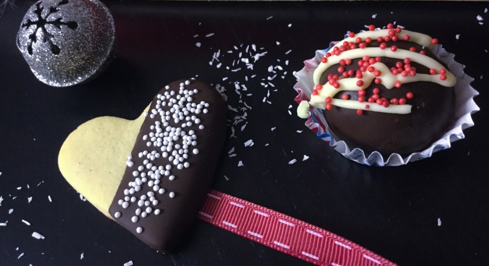 ⁃ amabili frollìni, decorati con cioccolato fondente o cioccolato al latte, altri farciti con confettura di lamponi (ricetta della frolla 👉🏼 qui, dose dimezzata);