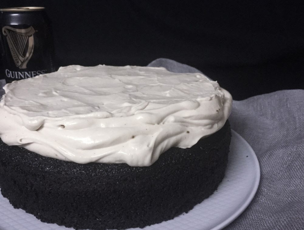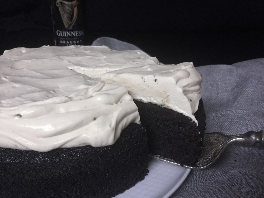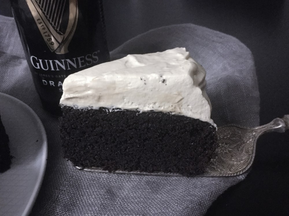 Una torta dalla consistenza soffice, umida e cioccolatosa, con un sapore vagamente ferroso e un leggero accenno di acidità da Guinness. Nella sua versione originale, Nigella arricchisce questa base splendidamente scura con un frosting al formaggio alleggerito con un po’ di panna, quasi a simulare la cresta schiumosa di un boccale di birra!
