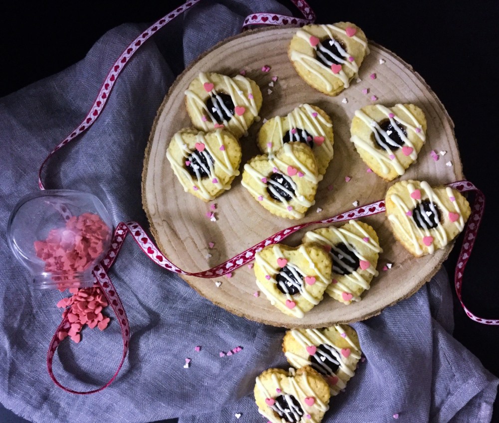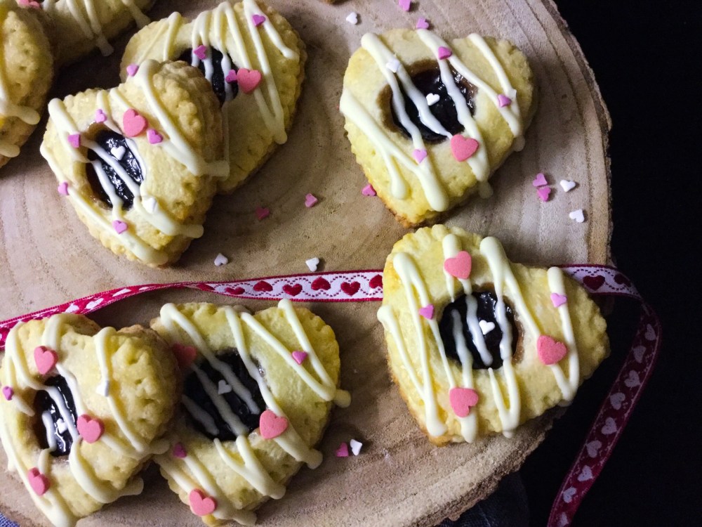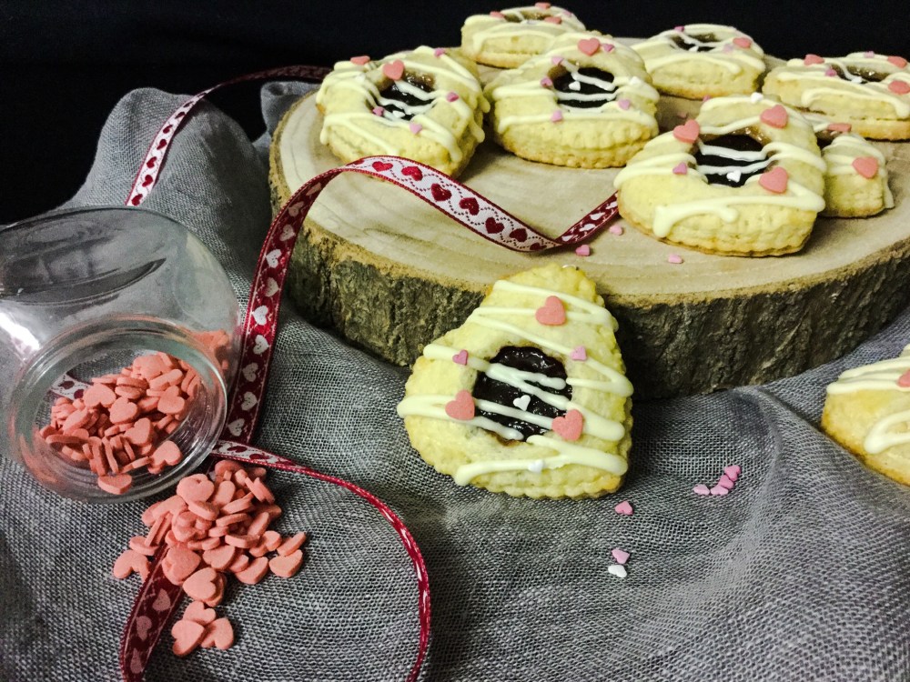 Qui sono proposte con un ripieno di confettura di ciliegie, in veste romantica, ancora in odor di festa degli innamorati.