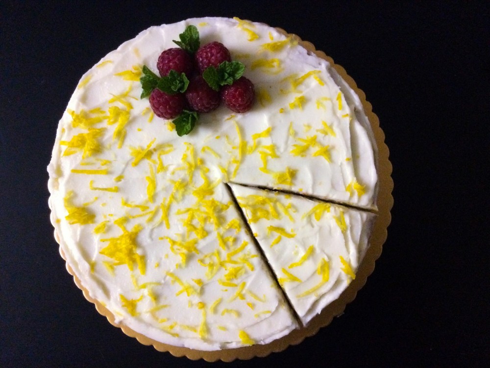 Due strati di torta ai lamponi glassati con un delizioso frosting al limone. Sapori delicati e nel contempo decisi. Consistenza morbida e umida al punto giusto.