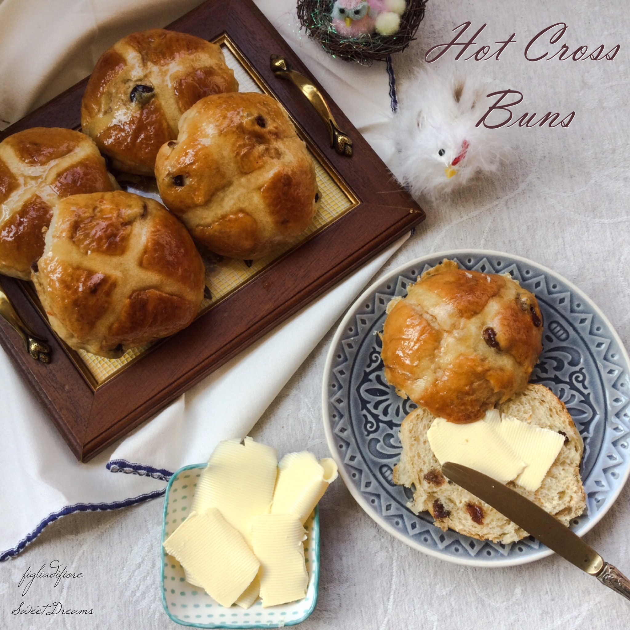 Per questa Pasqua finalmente ho deciso di realizzare gli Hot Cross Buns, i panini dolci e speziati originari del Regno Unito, ricchi di uvetta e caratterizzati da una croce in superficie, che vengono tradizionalmente mangiati durante il venerdì santo.
