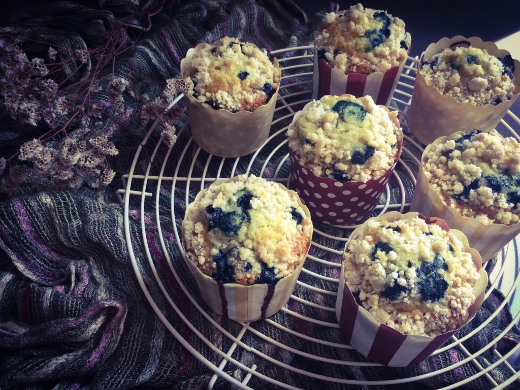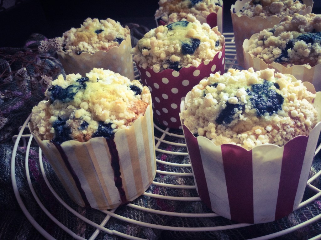 Certe mattine, specie nel weekend, mi alzo con una gran voglia di muffin. Un grande muffin ai mirtilli, profumato, soffice, con una cupoletta burrosa e friabile.
